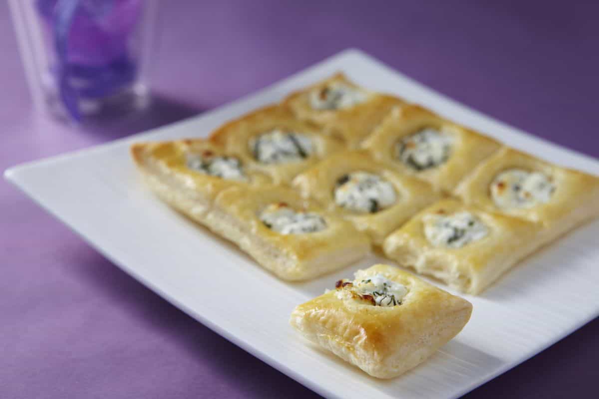 Carrés feuilletés au chèvre frais et aux herbes